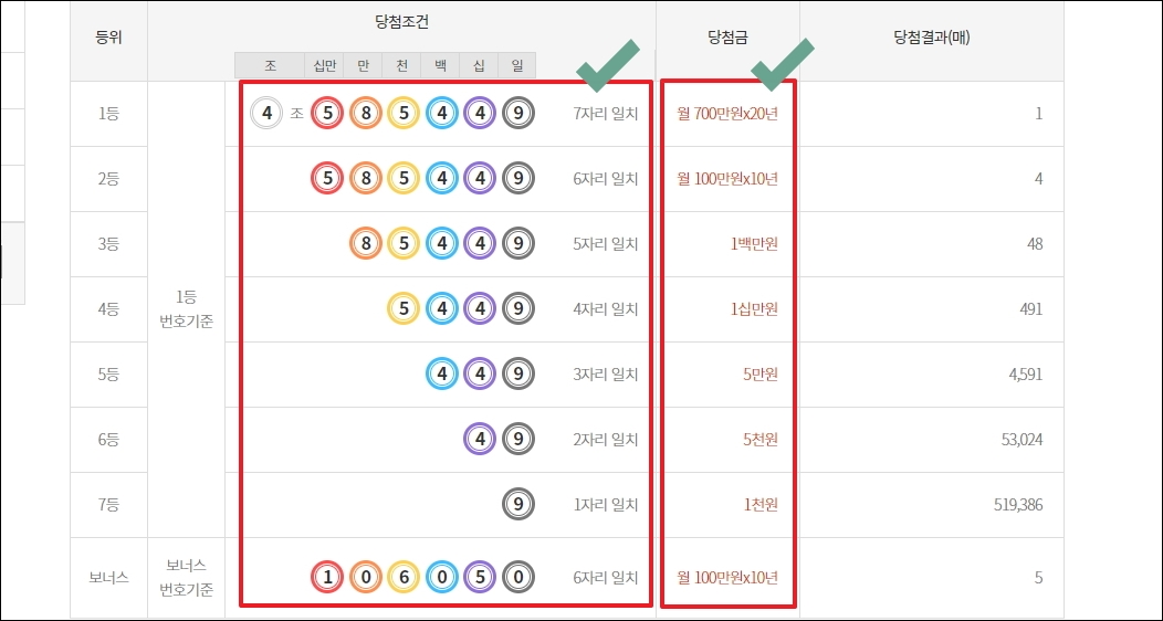 요즘에는 인터넷으로 안되는 일이 거의 없습니다. 연금복권의 경우 등수별 당첨 조건은 물론이고, 금액, 매수를 정확하게 알아볼 수 있습니다. 바로 동행복권 사이트를 이용하면 됩니다.