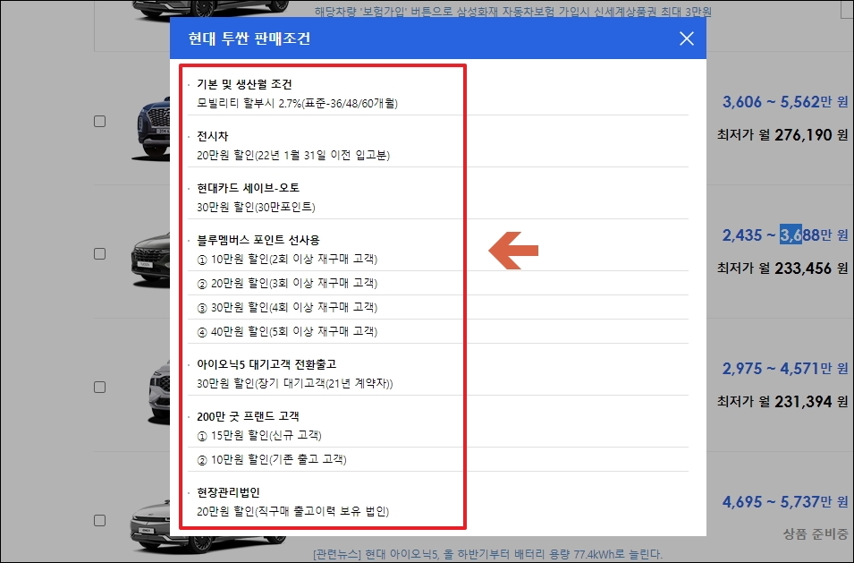 2022년 최신 기준, 판매조건을 함께 보는 현대자동차 투싼 가격표 이용하기.