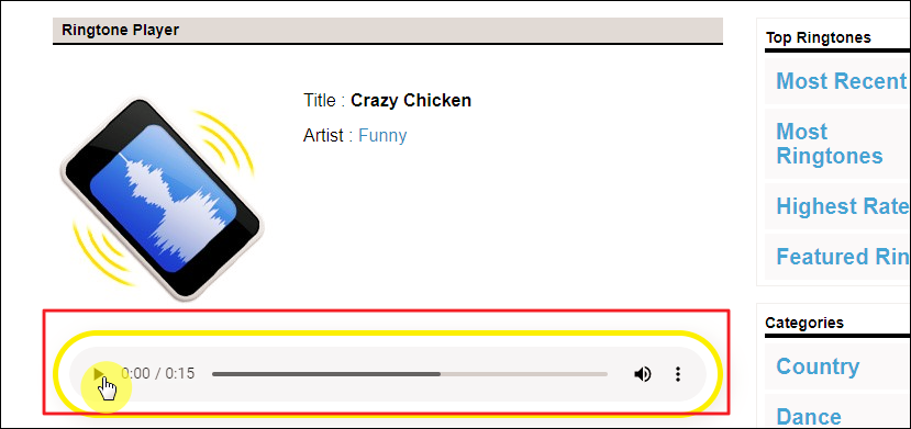 ▼ 사이트에 접속하면 메뉴에 있는 [Ringtones]를 클릭해 주세요. 그럼 바로 다운받기 가능한 여러 가지 벨소리가 나타납니다. 메인화면을 보면 크리스마스에 관련된 여러 가지 음원이 많이 보이네요. 재생 버튼을 누르면 사이트에서 바로 해당 음원을 들어볼 수 있어요. 마음에 드는 음원을 찾았으면 벨소리 이름을 클릭해 보세요.