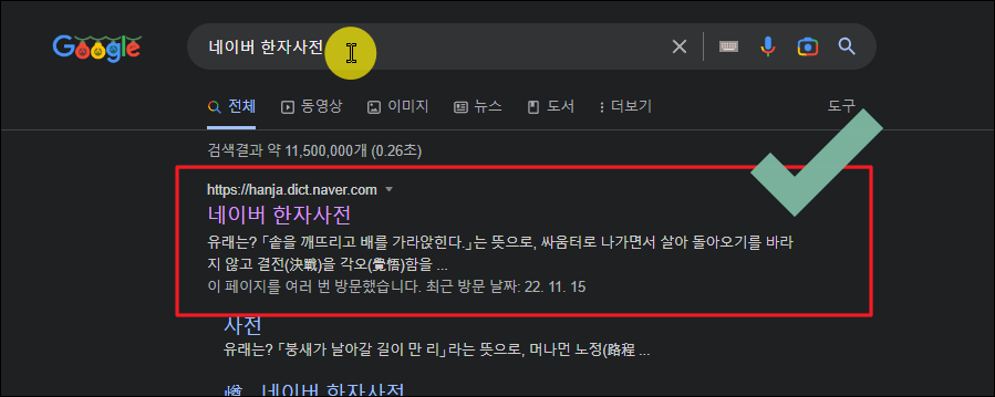 다음 단계에서 알려드리는 방법을 따라하면 한문에 대해 전혀 몰라도 3초만에 원하는 한문정보를 얻는 것이 가능합니다.