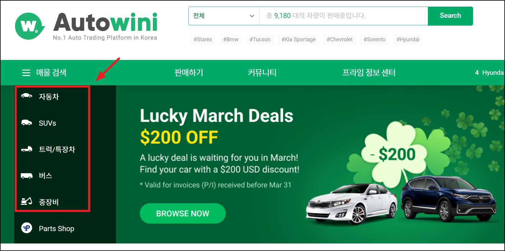 두 번째는 오토위니 사이트입니다. 이곳에서도 중장비 관련 정보를 얻을 수 있는데요. 자동차, SUV, 트럭, 특장차, 버스에 대한 매매정보를 얻는 것도 가능합니다.