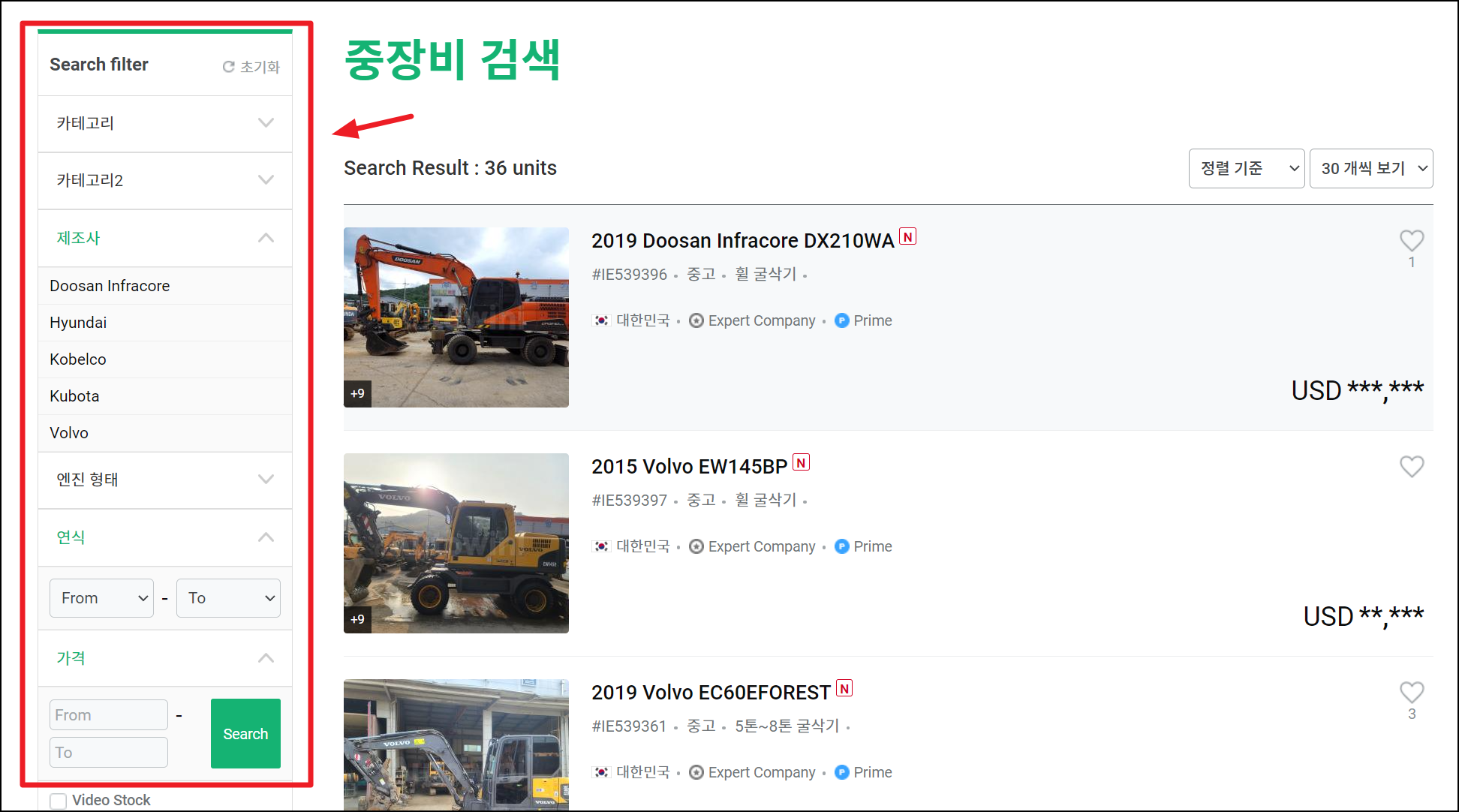 중장비 매매정보 사이트 이용하기.