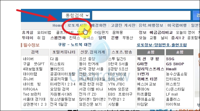 고베스트 홈페이지에 접속했습니다. 검색창을 기준으로 바로 아래를 보면 home, 로또게시판, 배경화면, 고클린 게시판 등 메뉴가 보이는데요. 여기에서 2번째 메뉴를 선택합니다.