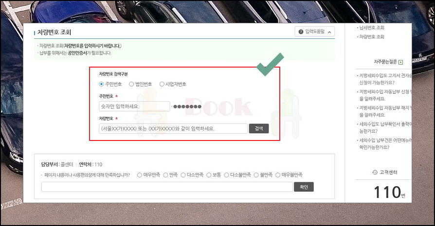 가장 편한 방법은 주차위반를 했던 차량번호로 조회하는 것이에요. 주민번호, 법인 및 사업자번호와 함께 차량번호를 입력한 후 검색 버튼을 클릭해 보세요.