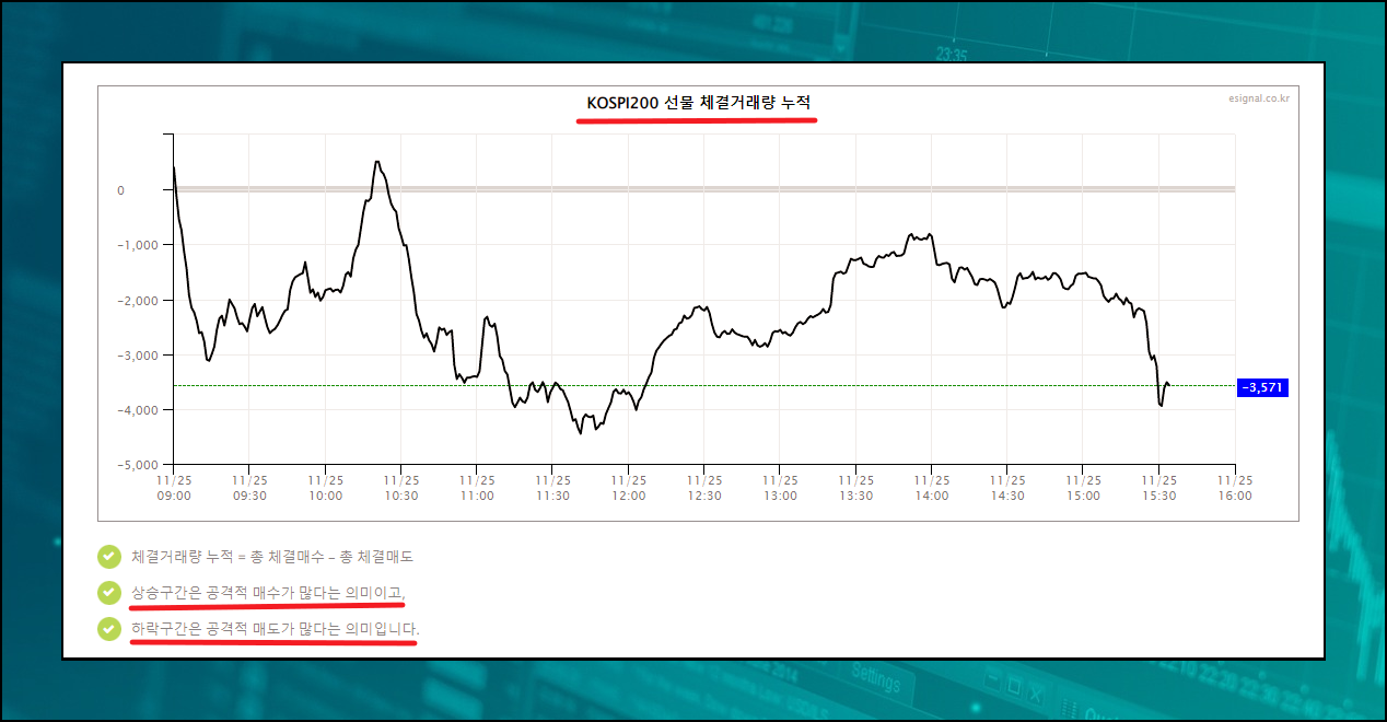 체결 거래량 누적 그래프도 확인할 수 있습니다. 상승구간은 공격적 매수가 많다는 의미 있고, 반대로 하락구간은 공격적 매도가 많다는 의미라고 하네요.
