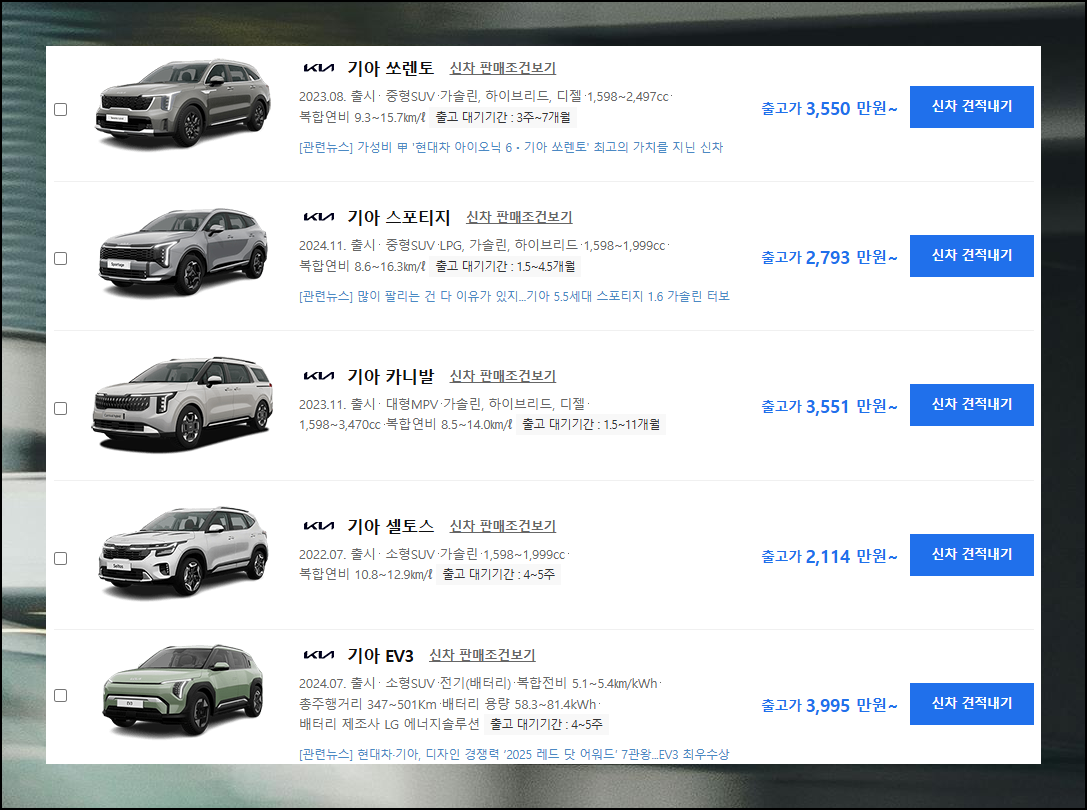 신차 구매를 고민하다 보면 복잡한 가격 정보와 옵션 선택에 머리가 아프기 마련입니다. 이럴 때 기아자동차 신차가격표 서비스를 활용하면 헷갈리는 정보를 한눈에 정리할 수 있어요.