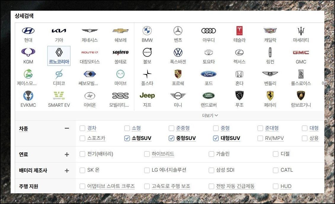 메이커를 지정한 다음 세부 검색 도구를 반드시 활용하세요. 관심 차종의 구체적 요건을 먼저 잡아두면 시간이 크게 줄어요. 아무 조건 없이 돌리면 전 모델이 동시에 쏟아지거든요.