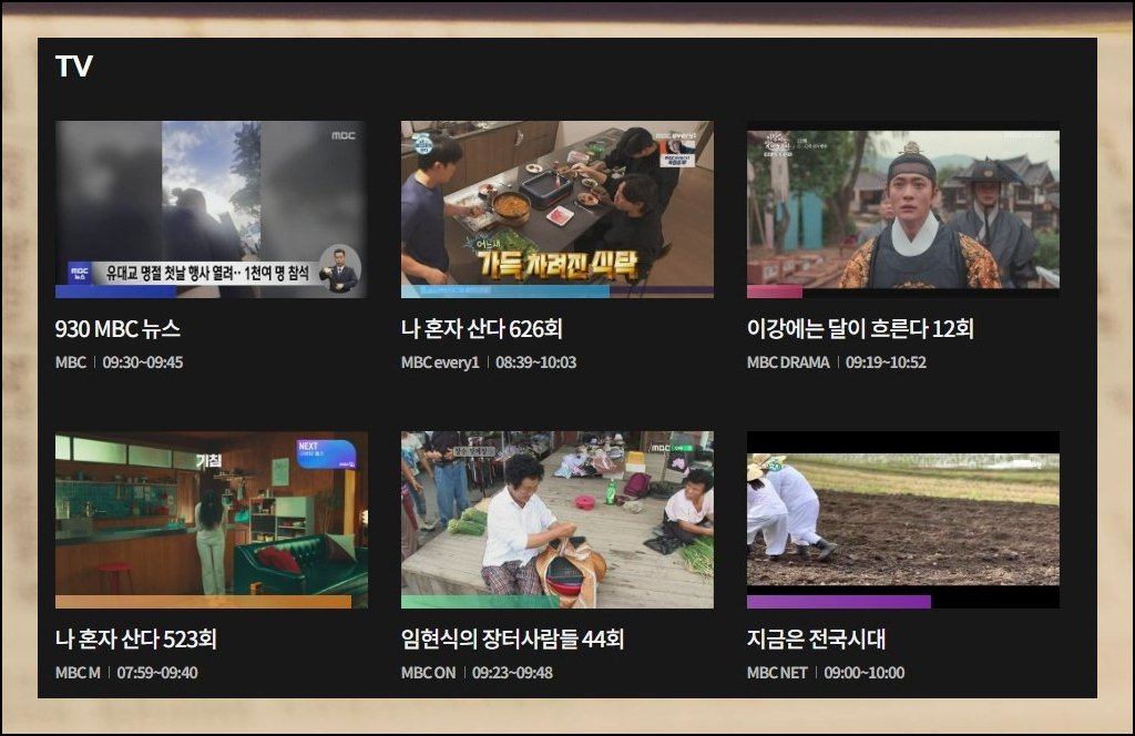 케이블 가입으로 접하는 것 이상의 풍성한 채널 라인업을 경험할 수 있어요. MBC EVERY1, DRAMA, ON을 포함한 복수의 채널이 대기 중입니다. 온라인으로 실시간 시청하면 고를 있는 범위가 크게 확장되죠.