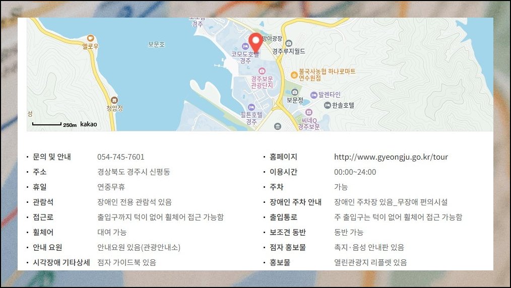 경주행을 계획 중이시라면 지금 알려드릴 관광지도 서비스를 꼭 한번 활용해 보세요. 이 도구 하나로 경주 일대의 다양한 여행 정보를 한 화면에서 훑어볼 만해요. 먹거리 장소와 잠자리, 카페부터 차량을 세울 공간까지 위치가 쉽게 확인됩니다. 본인 취향을 반영한 나만의 여행 동선도 직접 구상해 볼 수 있으니 쓸모 있는 안내자가 되어 줄 거예요. 처음 방문하시는 분들께 큰 보탬이 될 거예요.
