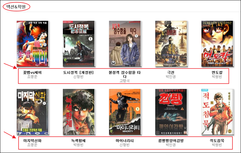 액션 및 학원물 장르에 대해서도 무료만화보기 가능한데요. 신형빈의 도시정복, 박인권의 극전, 고행석의 불청객 잠수함을 타다, 박원빈의 면도칼, 조명운의 마지막신화 등 재미있어 보이는 작품들이 전권으로 업데이트 되었어요.
