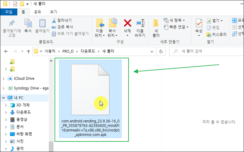 방금 다운로드 받은 파일이에요. 파일명이 꽤 길고, 확장자가 apk로 되어 있어요. 컴퓨터와 안드로이드 기기를 연결한 후 해당 파일을 전송해 주세요.