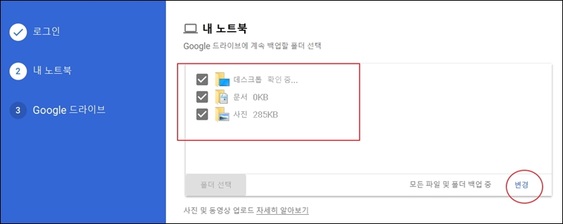 가장 먼저 해야 할 일은 백업(업로드)를 진행할 폴더를 컴퓨터에서 선택하는 일이에요.