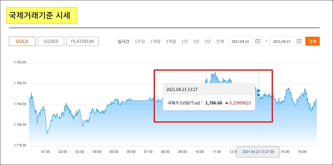 일반적으로 금괴가 백금으로 된 경우는 없지만, 이곳에서 백금에 대한 시세 확인도 가능합니다.