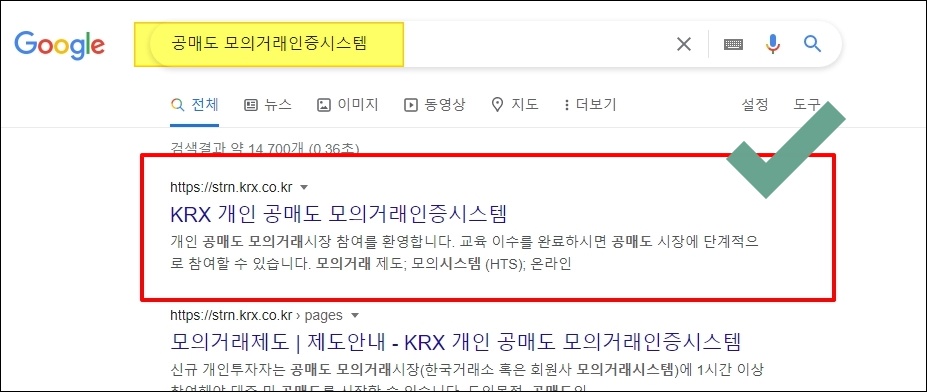 교육을 받은 이후에는 모의 투자를 진행해야 해요. KRX 개인 공매도 모의거래인증시스템 사이트에 접속해서 모의투자를 할 수 있어요.