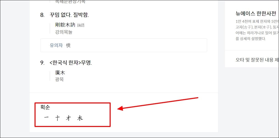 검색 결과를 보면 아시겠지만, 해당 문자를 포함한 관련 단어가 1000건이나 나타납니다. 그만큼 알아볼 수 있는 것이 많은데요. 일단 "나무 목"을 클릭해 보겠습니다.