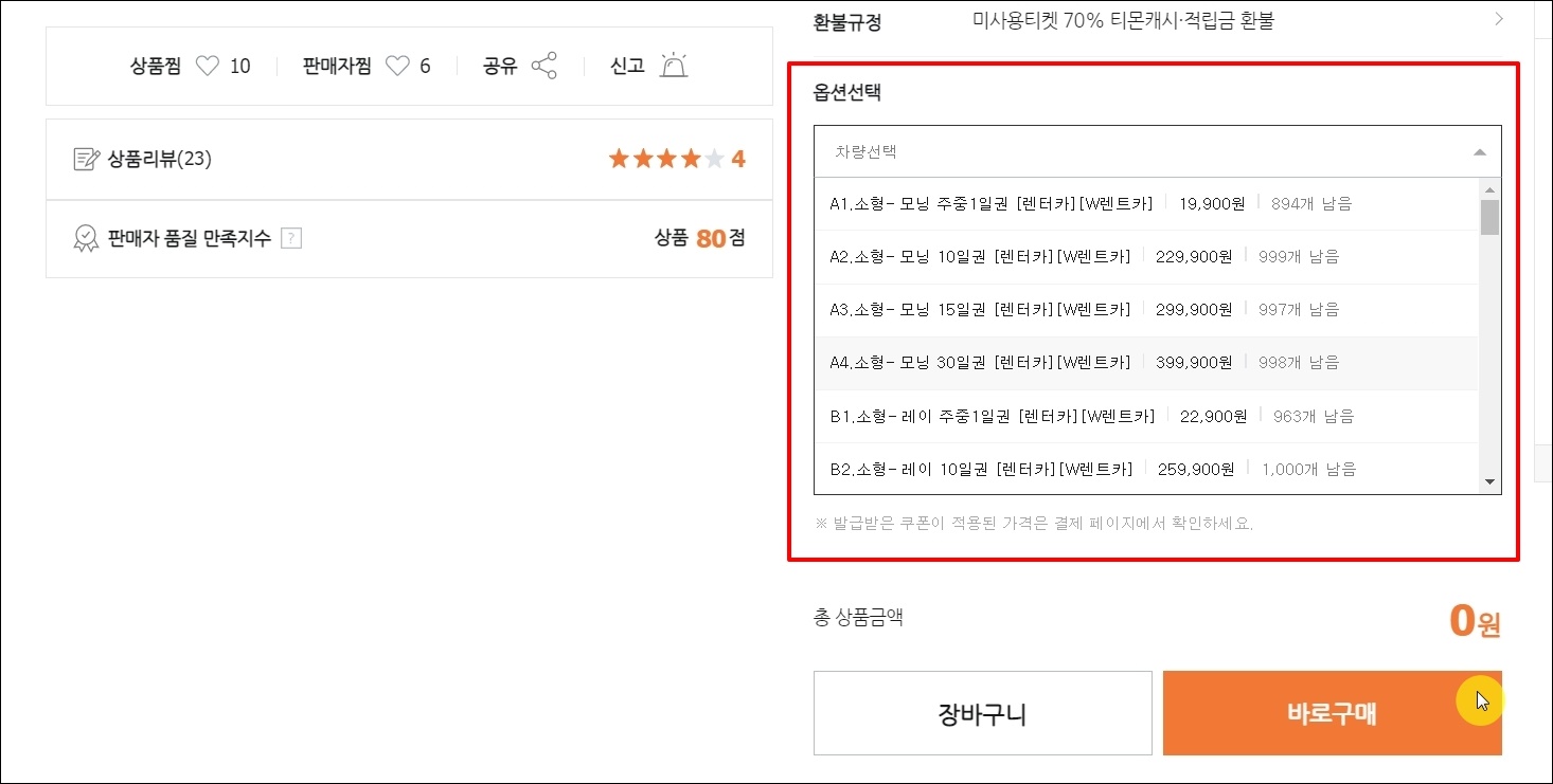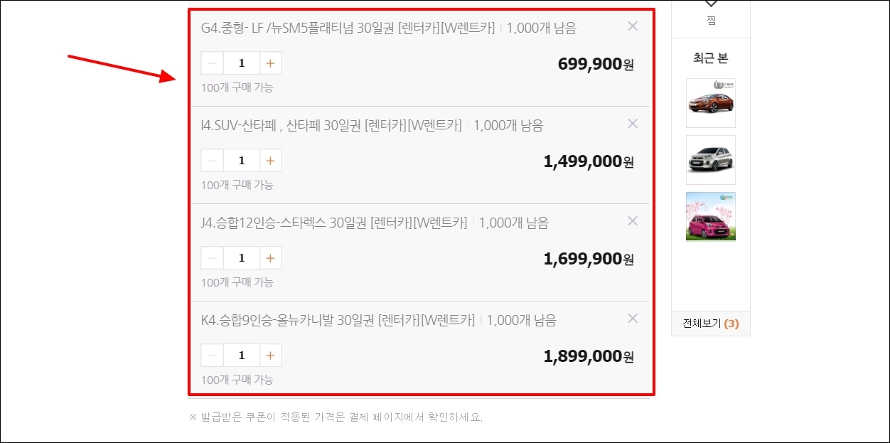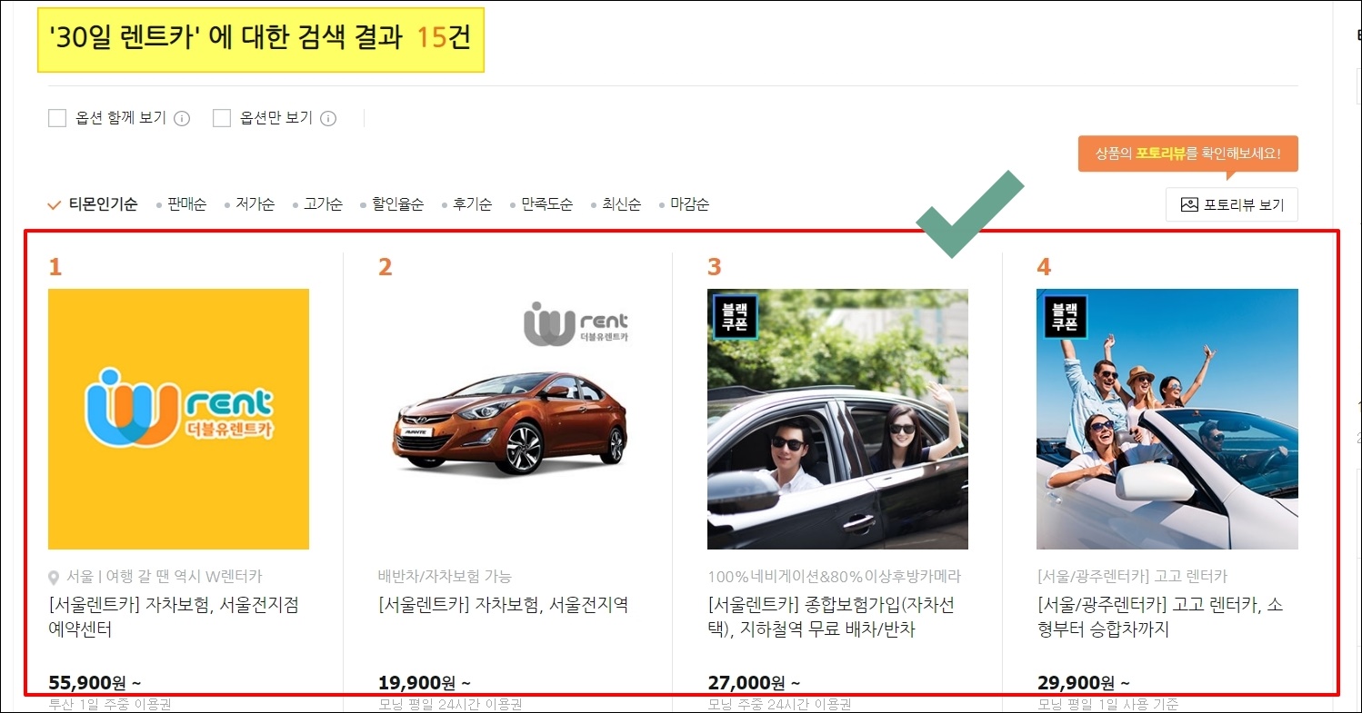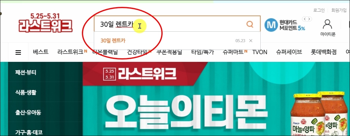 티몬 사이트에 접속해서 "30일 렌트카"를 검색해 보세요.
