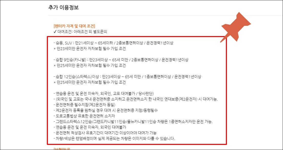 렌트카를 이용할 때 주의할 점이 있는데요. 기본적인 자격 조건 외에도 차량 종류에 따라 요구되는 조건이 다를 수 있습니다. 나이, 면허증 종류, 운전경력 등을 기준으로 대여 조건을 파악하는데요. 예약을 하기에 앞서 이러한 사항을 꼼꼼히 확인한 후 진행해야 추후 문제가 생길 소지를 줄일 수 있습니다.