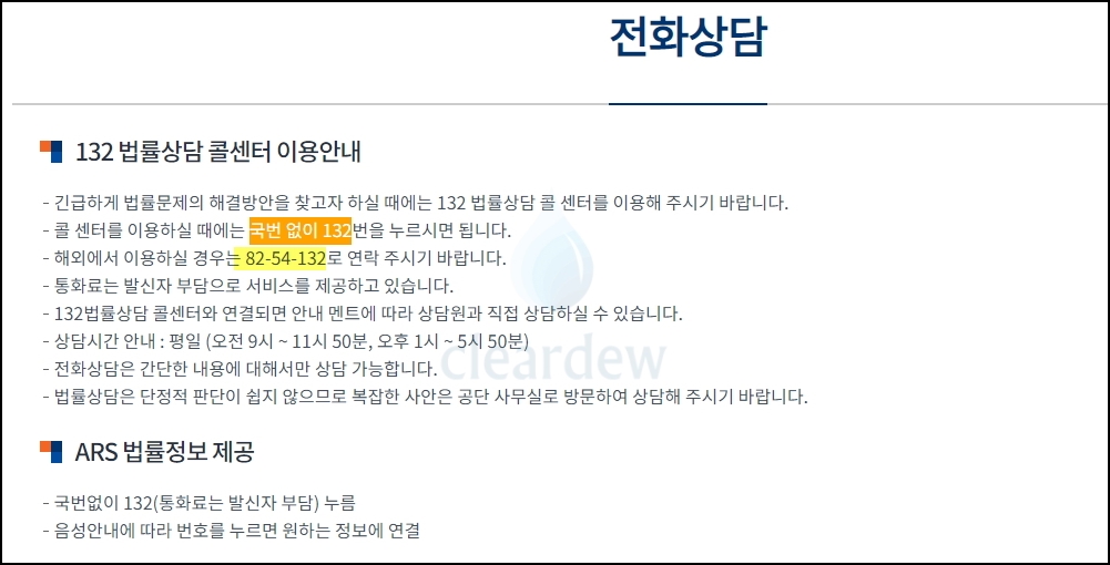법률상담 전화번호 ARS 안내