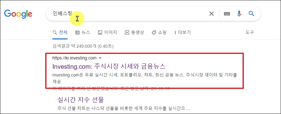 주식 투자에 대한 경험이 많은 사람이라면 인베스팅 사이트를 알고 있을 거에요. 이곳에서는 많은 정보를 실시간으로 얻을 수 있어서 좋은데요. 사이트에 접속해서 미국 나스닥, 다우, S&P 지수에 대한 정보를 살펴볼게요.
