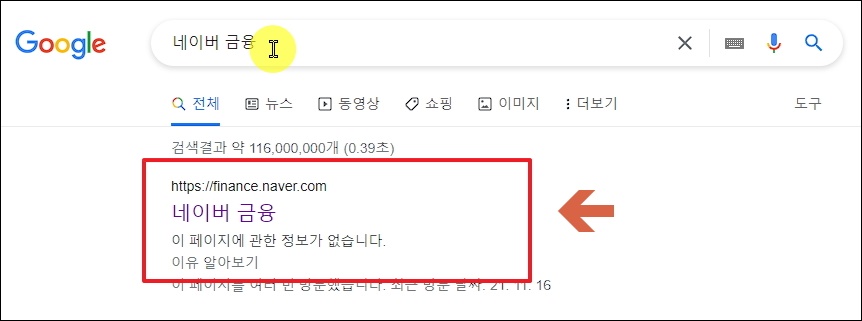 국내 사이트와 해외 사이트 이렇게 2가지에 대한 사용법을 알려드릴건데요. 두 가지 모두 무료로 이용할 수 있고, 빠르고 정확한 정보를 제공하는 곳이에요. 각자 특징이 있기 때문에 저처럼 함께 사용하는 것을 추천해요. 일단 검색을 통해 네이버 금융 사이트에 접속해 주세요.