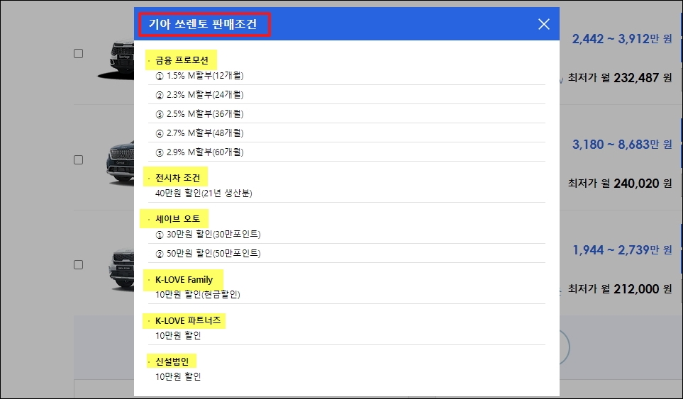 | 기아자동차 판매조건, 옵션 및 최종 구매 비용 살펴보기 (0) | 2020.03.12 |