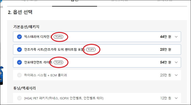 ▼이번에는 옵션을 선택할 차례입니다. TOP 표시를 통해 어떤 옵션이 가장 인기가 있는지 알 수 있습니다.