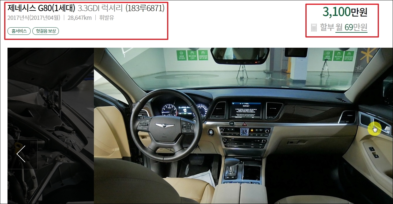▼사진 외에도 차량 LIVE 영상을 받을 수 있습니다. 새롭게 이동한 사이트에서 제네시스 중고차를 구매하는 경우 3일 환불 보장, 집 앞까지 배송 서비스도 제공한다고 합니다. 이 외에 중고차 구매 시 꼭 확인해야 하는 성능 및 상태 점검 등의 이력 확인이 가능합니다.