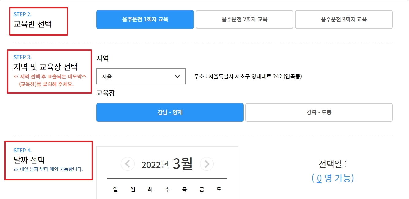 ▼교육반 선택에서는 본인이 음주운전 1회자인지 2회자 또는 3회자인지 선택하면 됩니다. 가급적 가까운 곳이 좋습니다.
