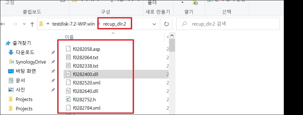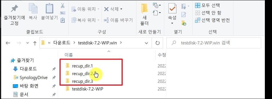 ▼폴더를 열어보면 이렇게 recup_dir로 시작하는 폴더가 여러 개 생성되어 있습니다.