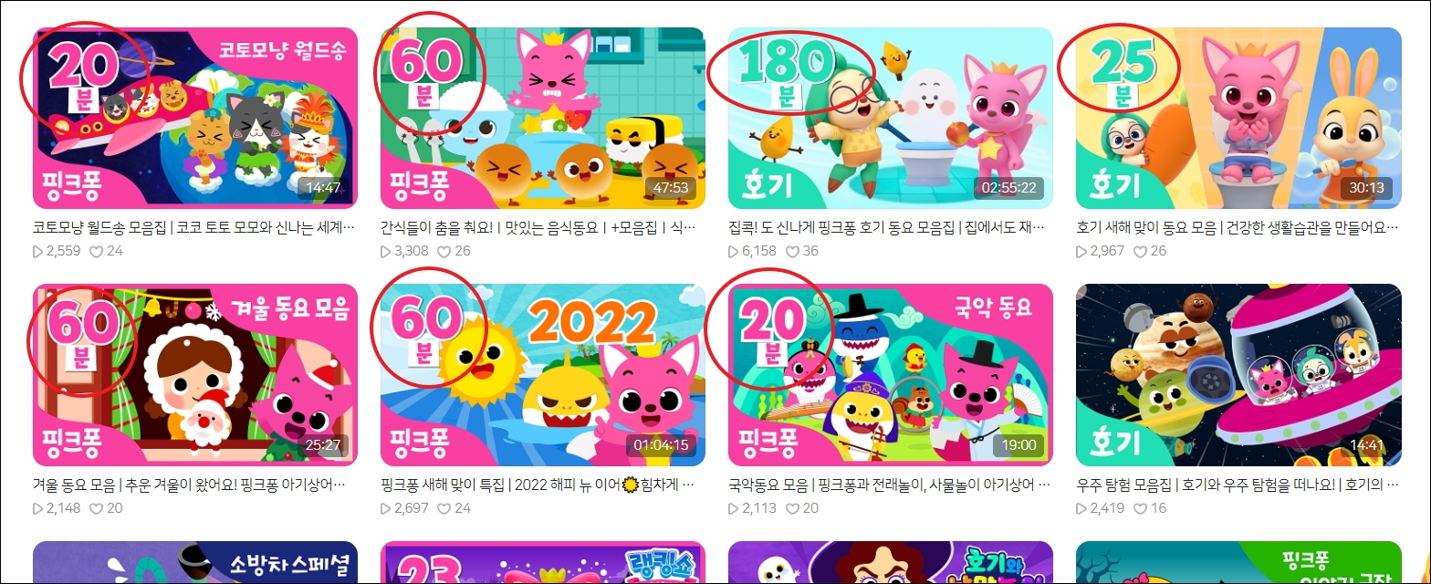 ▼요즘 어린이들에게 인기가 있는 컨텐츠 시리즈는 바로 핑크퐁 입니다. 아기자기한 케릭터와 재미있는 영상, 신나는 음악을 통해 어린이들의 사랑을 독차지하고 있죠. 핑크퐁에서는 이렇게 일정 시간 동안 연속듣기 할 수 있도록 동요 모음집 시리즈를 갖추고 있습니다. 제가 이용하는 방법대로 하면 무료로 쉽고 편하게 이용이 가능합니다.