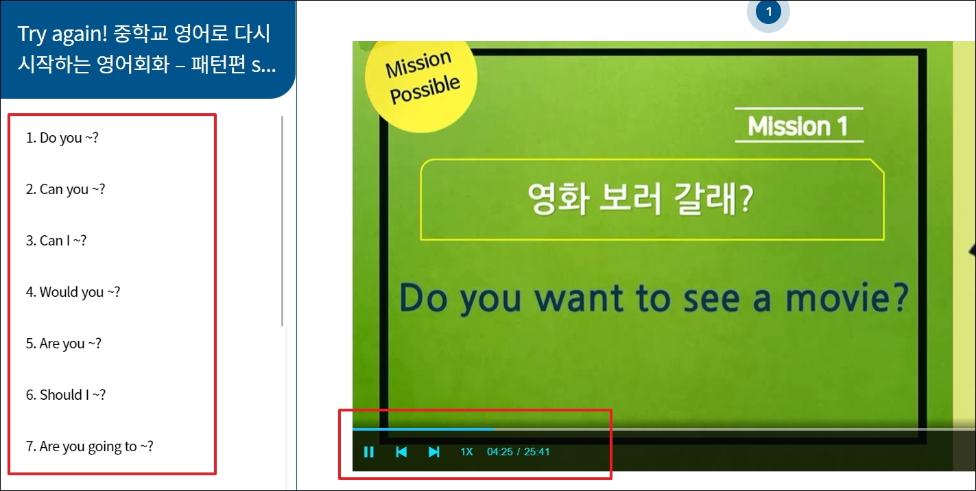 ▼본인의 실력에 맞는 것을 선택하면 됩니다. 처음 영어회화 공부를 시작하는 경우라면 "중학교 영어로 다시 시작하는 영어회화 강좌", "미국인을 처음 만난 왕초보의 리얼 영어회화" 강좌를 들으면 좋습니다. 두 가지 모두 공부 혼자하기 어렵지 않은 수준입니다.