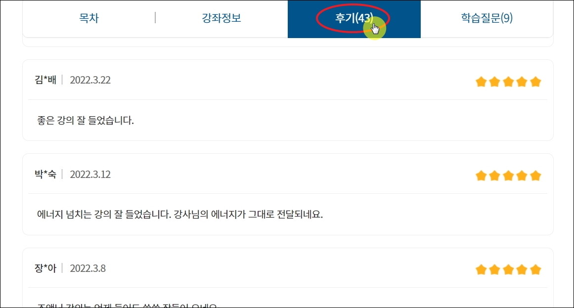 ▼어떤 강좌를 선택해야 할지 잘 모를 때에는 후기를 참고하면 좋습니다.