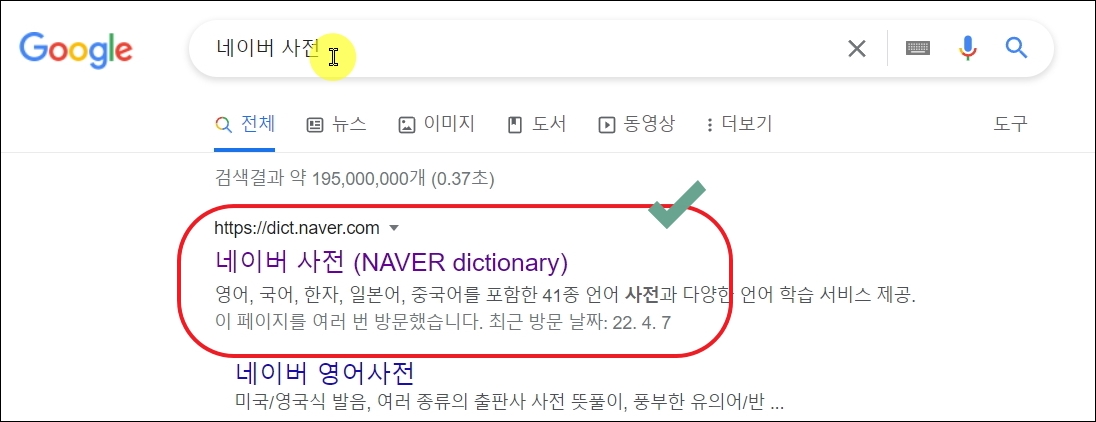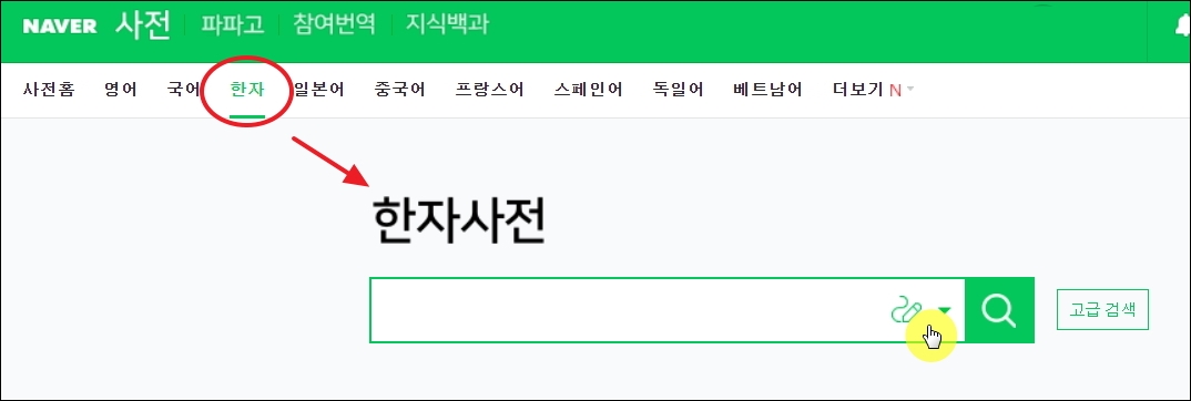 ▼제가 주로 한자를 찾기 위해 사용하는 사이트가 있습니다. 바로 네이버 사전 사이트입니다. 담고 있는 정보가 엄청 방대하기 때문에 여러 모로 유용합니다.