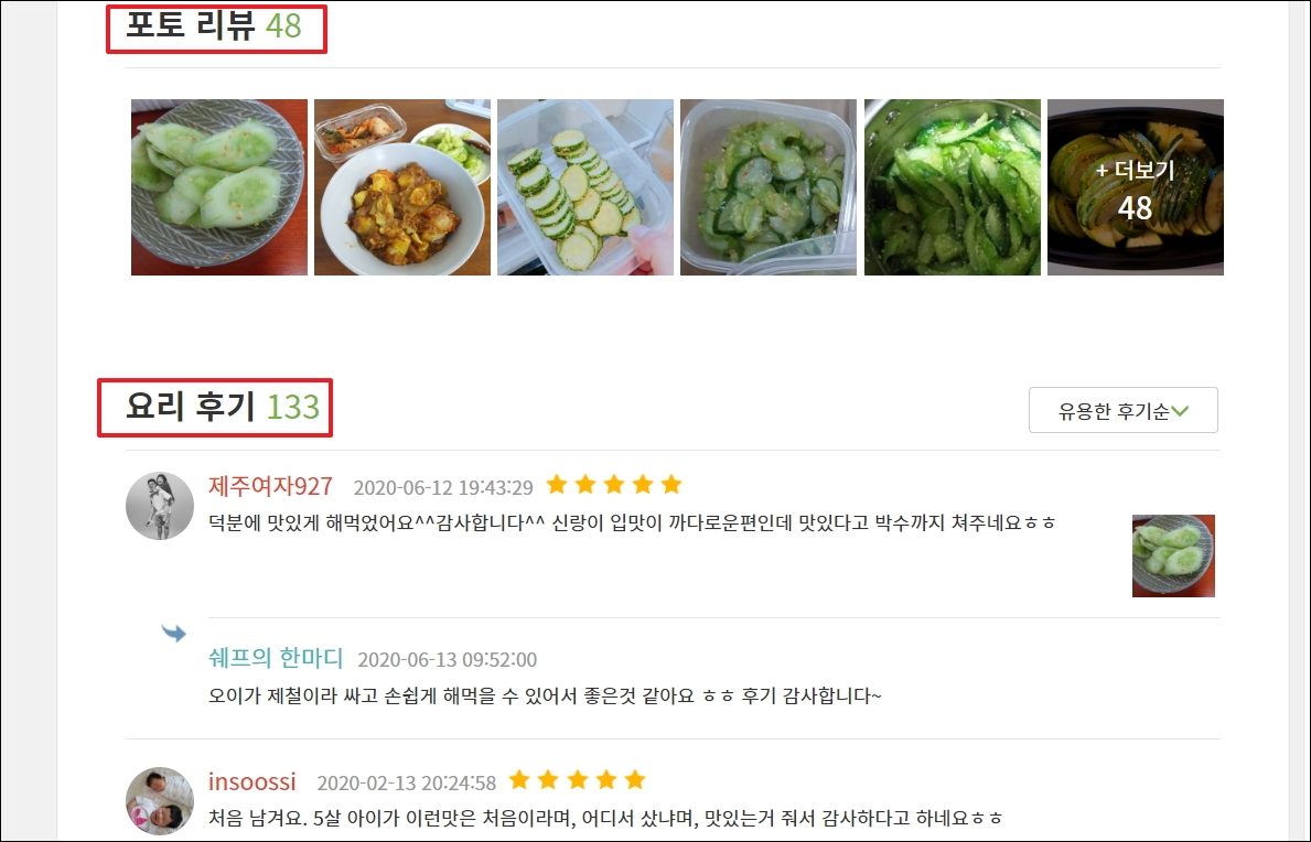 ▼맛있는 반찬 만들기 방법을 선택할 때 다음과 같이 포토 리뷰나 요리 후기를 참고하면 좋습니다. 대체적으로 맛있거나 만들기 방법이 간단한 경우 높은 평점을 받습니다.