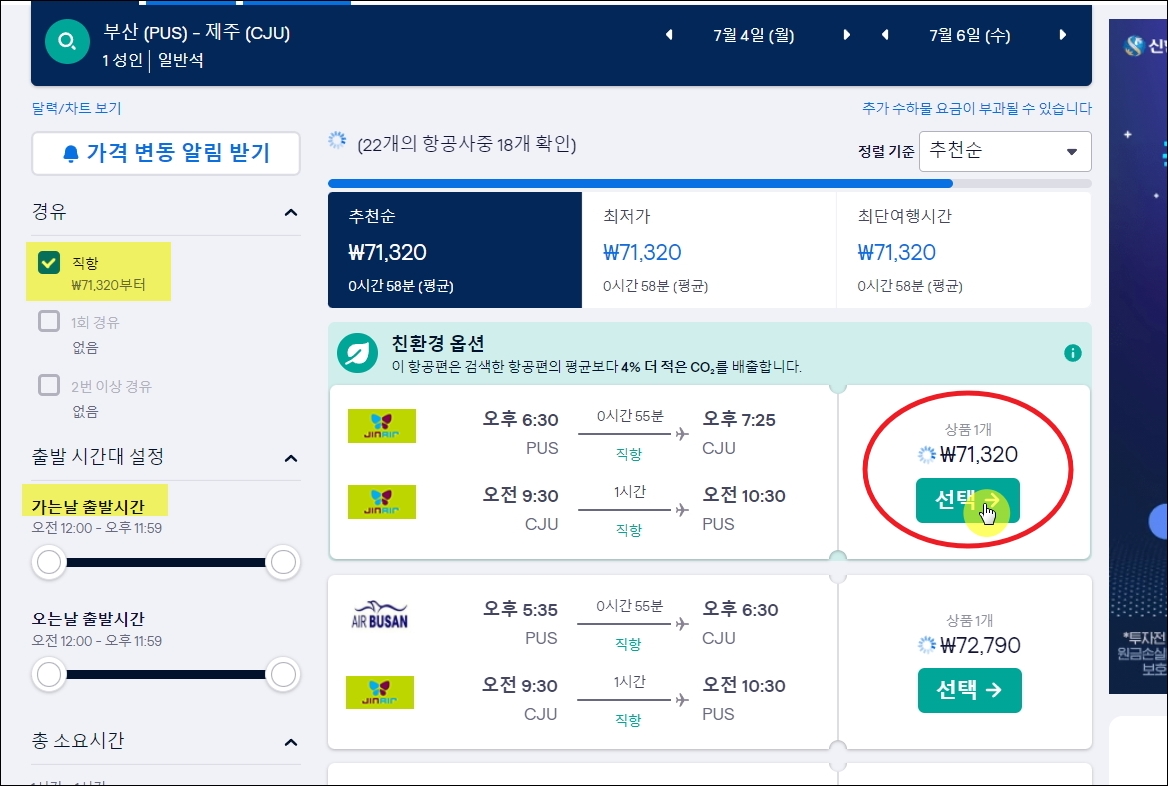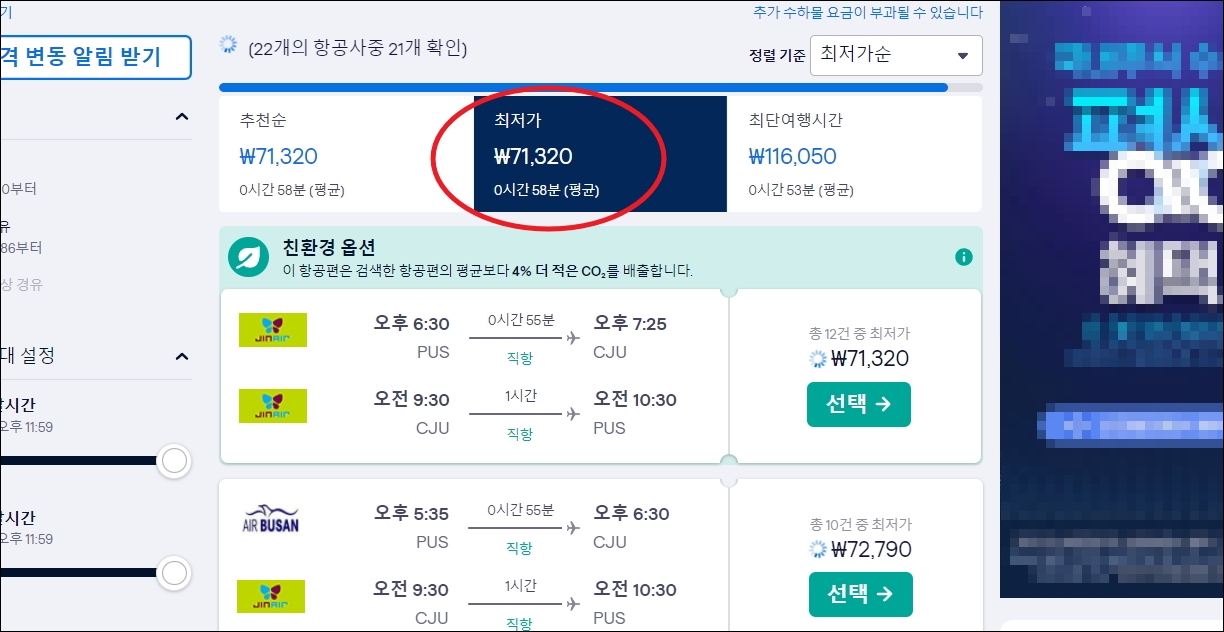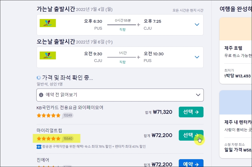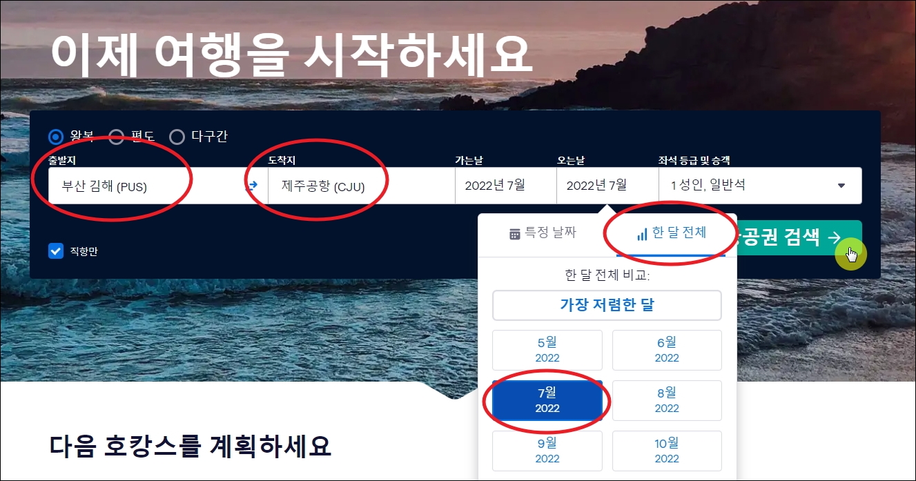 인터넷으로 부산에서 제주도 가는 비행기 최저가로 예약하기.