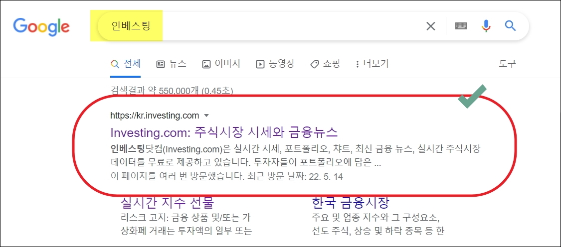 ▼두 번째는 해외 사이트인 인베스팅을 이용하여 모든 종목에 대한 가격 정보를 실시간으로 확인해 보도록 하겠습니다. 이곳은 워낙 유명한 사이트입니다. 제공하는 서비스와 기능이 많기 때문에 모든 기능을 제대로 아는 사람이 드뭅니다. 주식 전종목 보기 방법을 알려드리겠습니다.