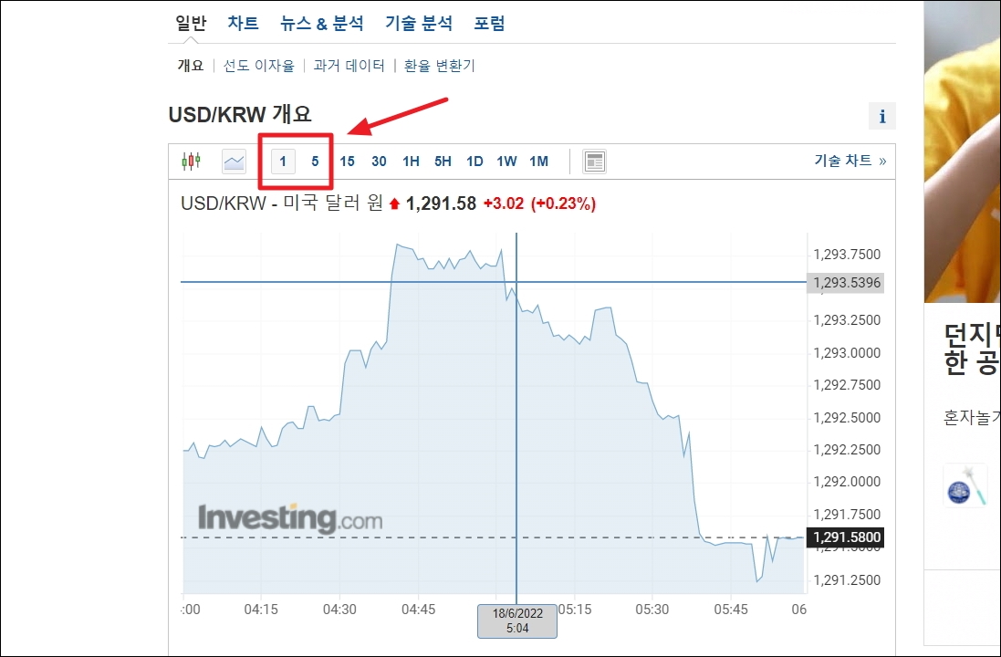 ▼다음과 같이 달러와 원에 대한 환율 시세를 확인하는 것은 물론이고, 1분 이내로 그려지는 차트를 확인하는 것이 가능합니다. 외화 투자를 하는 분들이라면 꼭 필요한 기능이겠죠. 여기에 더하여 달러 관련 뉴스나 분석자료를 읽어보거나 그래프 패턴 분석 결과를 확인할 수 있습니다. 달러시세 예측에 도움이 되죠. 그럼 어떻게 하는지 알려드릴테니 하나씩 따라해 보시길 바랍니다.