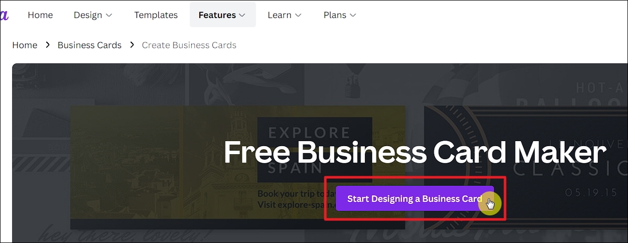 ▼두번째로 알려드리는 명함 제작 사이트는 칸바닷컴입니다. 이곳에 접속하면 다음과 같이 무료 명암제작 프로그램 페이지가 열립니다. 여기에서 [스타트 디자이닝 어 비즈니스 카드] 버튼을 클릭해주세요. 첫 페이지는 영어로 나와 있지만, 우리가 명함 제작을 할 때에는 한글화가 잘 되어있는 사이트에서 진행됩니다.