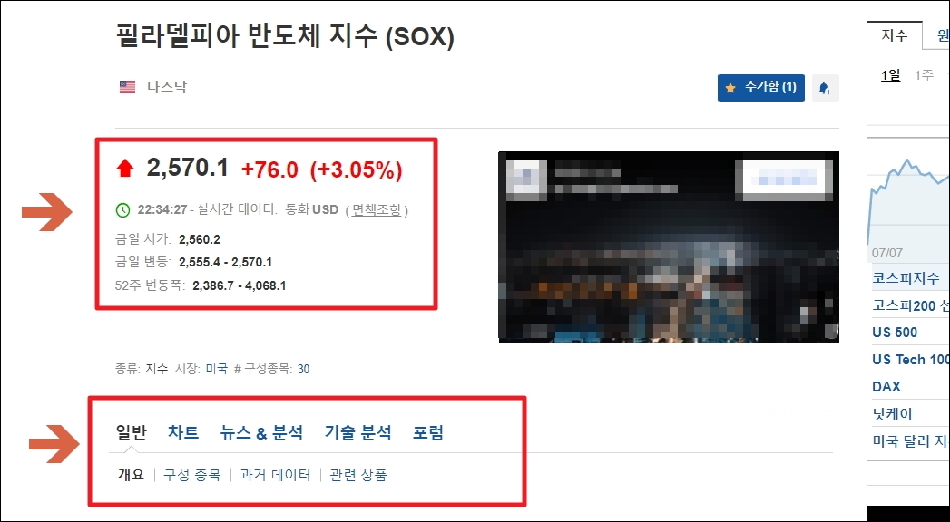 인터넷으로 실시간 필라델피아 반도체 지수 편하게 확인하기.