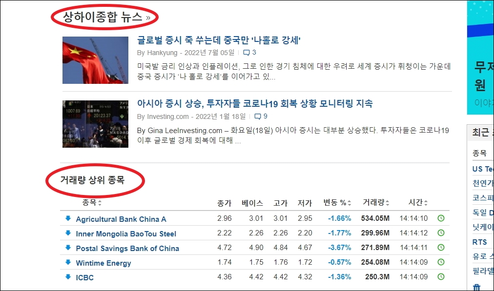 중국 주가지수 실시간으로 확인하기 (상해, 항생 포함)