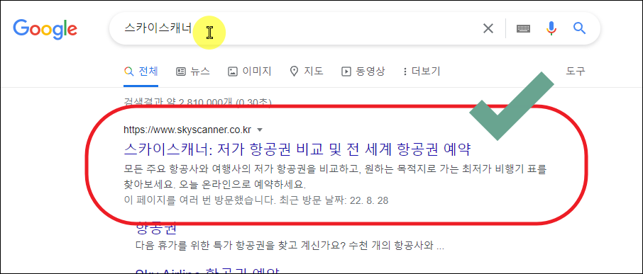 ▼그럼 바로 저렴한 제주도 왕복 항공권을 찾고, 예약하는 방법을 알려드리겠습니다. 제주도를 포함한 세계 모든 곳으로 가는 항공권을 예약할 수 있는 사이트가 있습니다. 바로 "스카이스캐너"인데요. 해당 사이트를 이용하면 편하게 저렴한 티켓을 찾을 수 있습니다. 예약도 바로 진행이 가능해요.