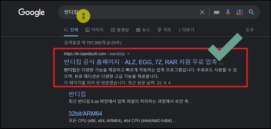 ▼ 압축 해제 프로그램이 컴퓨터에 설치되어 있지 않은 분들을 위하여 무료 압축 프로그램을 다운 받는 방법을 알려드리겠습니다. 반디집 공식 홈페이지에 접속하면 되는데요. zip은 물론이고, ALZ, EGG, 7Z, RAR 등 여러 가지 압축 파일을 해제하거나 반대로 압축이 가능합니다.