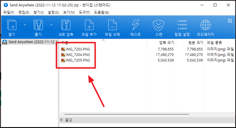 ▼ 다운 받을 파일은 압축이 되어 있습니다. zip 파일로 압축이 되어 있는데요. 압축 해제 프로그램인 반디집을 이용하여 압축을 해제 해주세요. 그럼 우리가 옮기려고 했던 사진 파일을 만나볼 수 있습니다.