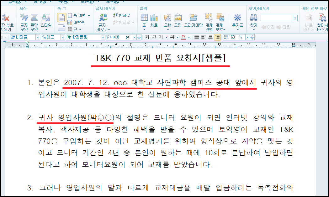 ▼ 두 번째는 반품 요청서 입니다. 요즘 같이 온라인으로 주문하는 일이 많을 때에는 반품을 진행할 일이 많은데요. 주문을 진행할 때 뭔가 문제가 있다면 반품 요청을 할 수 있죠. 이럴 때 사용할 수 있는 우체국 내용증명 샘플 양식 입니다.
