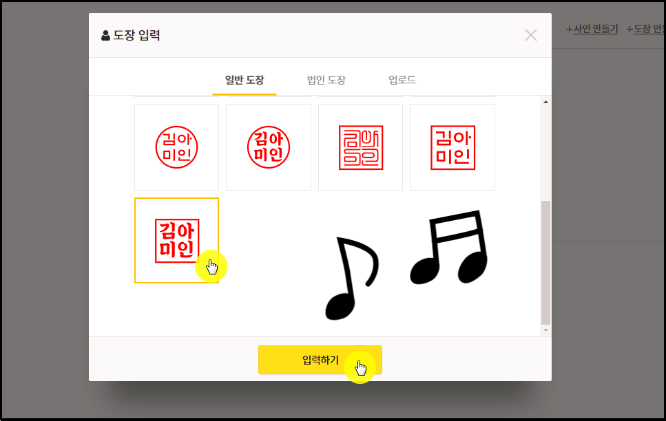 ▲ 여러 가지 도장 디자인을 선택할 수 있도록 되어 있는데요.