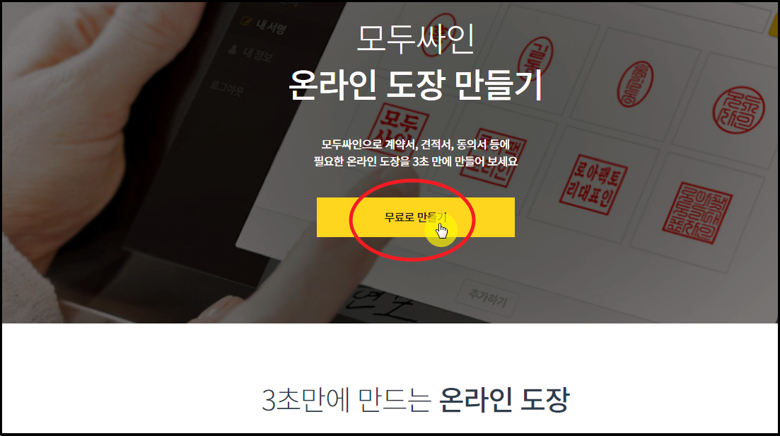 ▲ 모두 사이트에 접속하면 "온라인 도장 만들기"에 대한 안내가 나타납니다.