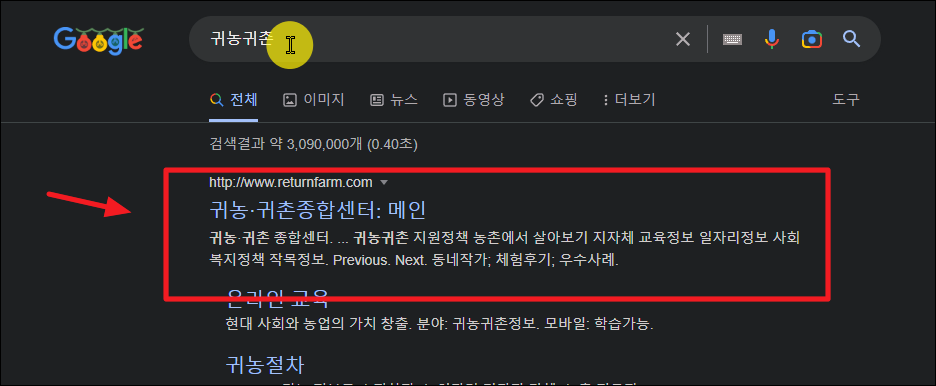 ▲ 귀농귀총 종합센터 홈페이지에 접속했습니다. 이곳의 경우 상담, 교육, 지원, 자료실 등 귀농이나 귀촌을 할 때 필요한 여러 가지 서비스를 제공하고 있는데요.