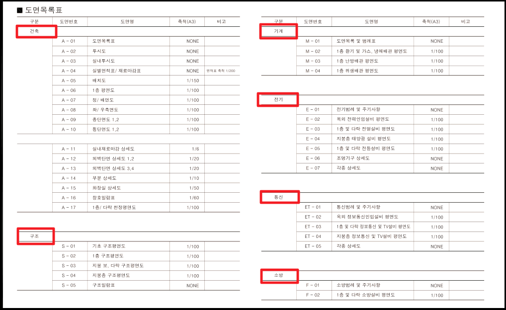▲ 이번에 다운 받을 설계도 중 하나인 총단면도 입니다. 이런 식으로 건축을 진행할 때 실제로 사용이 되는 도면들로 구성되어 있습니다.