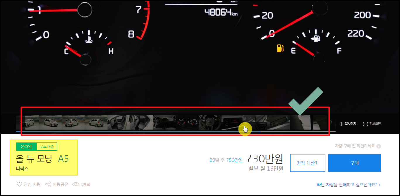 저는 올 뉴 모닝을 선택했는데요. 새롭게 열린 페이지에서 가장 먼저 많은 사진을 확인할 수 있었습니다.