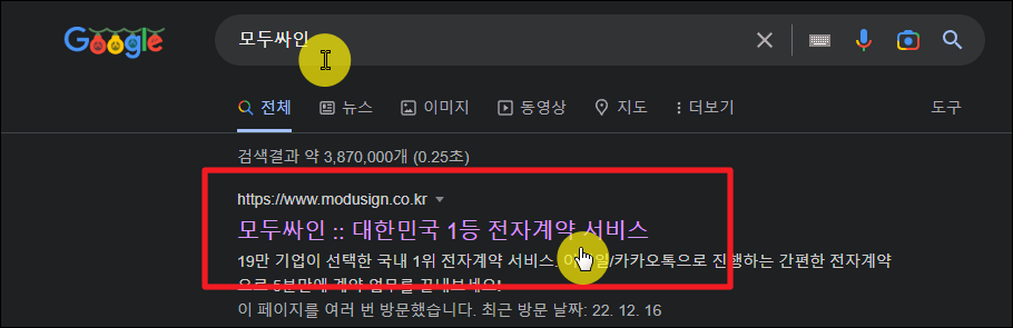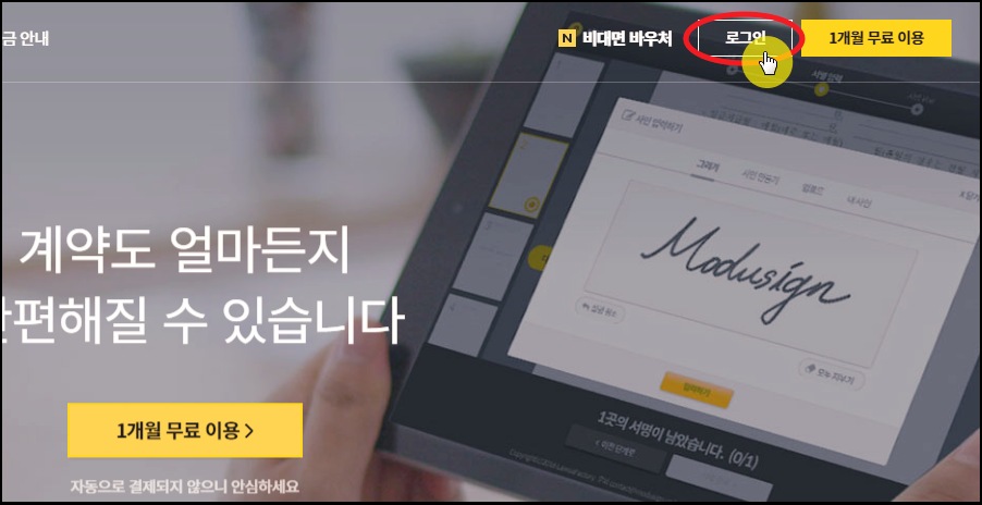 이번에 사용할 프로그램은 따로 설치할 필요는 없습니다. 전자계약 서비스로 유명한 모두싸인 사이트에 접속하면 온라인 상에서 바로 사용할 수 있어요.